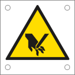 49649N - Cartello alluminio pericolo taglio verticale su mano